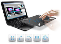 Samsung's new large multi-touch clickpad is stylish and convenient. Featuring a new glass coating and image sensor, users can enjoy enhanced multi-touch awareness and better palm rejection. This means no more cursors disappearing or frustratingly jumping place. The new intelligent multi-touch gesture pad, which is now centered for usability, also features 21 types of gesture support (such as pinch, swipe, and rotate) with advanced 3D image sensing for sophisticated and intuitive navigation.
