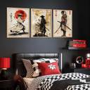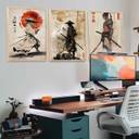 Samurai Posters with Frame | Aesthetic Samurai Characters Posters with Frames | Japanese Art Framed Poster for Bedroom Living Room Gaming Room Wall Decor Set Of 3 Paper Print (13 inch X 10 inch)