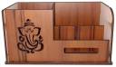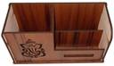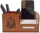 SAMWAX 3 Compartments Wooden Pen Stand With Visiting Card & Mobile Holder (Broun)