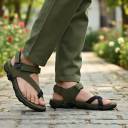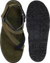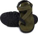 This product is a olive sandal designed for casual or outdoor wear, featuring an open-toe construction with a toe loop and supportive straps secured by velcro closures and a side button attachment. The sandal combines functional comfort with a rugged sole suitable for varied terrains, and visible contrasting stitching adds both durability and visual appeal. This men's sandal is crafted from olive suede material, featuring a unique toe loop and double-strap design for enhanced grip and support. The sandal sports a sturdy rubber outsole with textured grip, making it ideal for both everyday casual use and light outdoor activities. Adjustable velcro straps allow for a custom fit around the ankle and instep, while the cushioned footbed provides all-day comfort.
