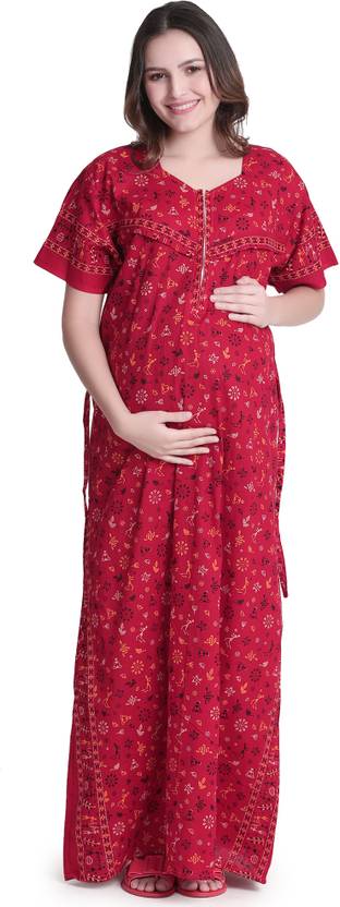 Floral Print and Knee Length Short Nighty Woolen Fabric and Front Zip and 2 Side Pockets
