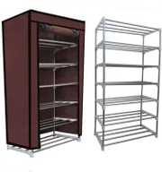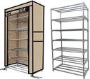 SANAMSTORE 6 Layer Metal Pipe with Non-Woven Fabric Cover Shoe/Toy/Books Rack-Beige Metal Collapsible Shoe Stand (Beige, 6 Shelves, DIY(Do-It-Yourself))