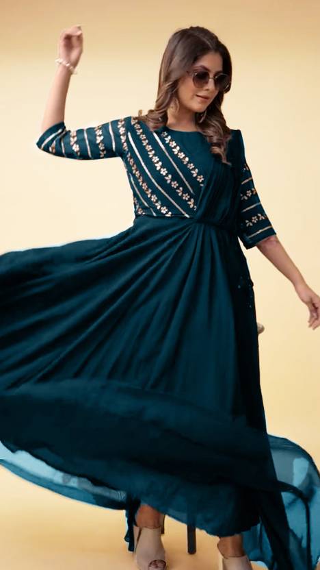 Step into elegance with our Georgette Fabric Gown, designed with a saree-inspired pattern that combines the best of both worlds. This exquisite gown boasts intricate embroidery on the yoke, sleeves, and back, adding a touch of sophistication to your attire. Crafted from lightweight and flowing georgette fabric, it offers comfort and style in one stunning package. Make a statement at any event with this gracefully designed gown.