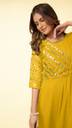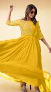 Step into elegance with our Georgette Fabric Gown, designed with a saree-inspired pattern that combines the best of both worlds. This exquisite gown boasts intricate embroidery on the yoke, sleeves, and back, adding a touch of sophistication to your attire. Crafted from lightweight and flowing georgette fabric, it offers comfort and style in one stunning package. Make a statement at any event with this gracefully designed gown.