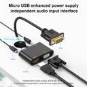 Sancy VGA to HDMI Adapter, Dual 1080P Splitter with Audio & Charging Cable for PC Gaming Adapter (Black, For PC)