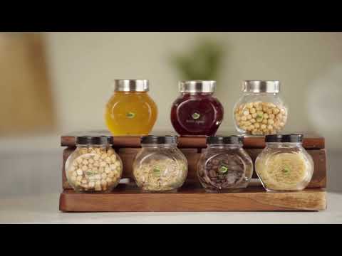 Glass Grocery Container - 200 ml (Pack of 8, Clear, Green)