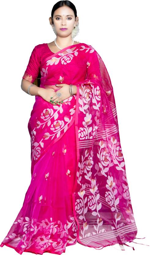 Sandhya Saree Creations Woven Handloom Muslin Saree (Pink)