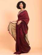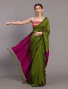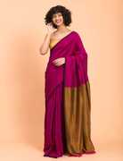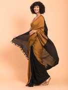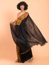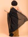 saree star Color Block Handloom Cotton Silk Saree (Black)