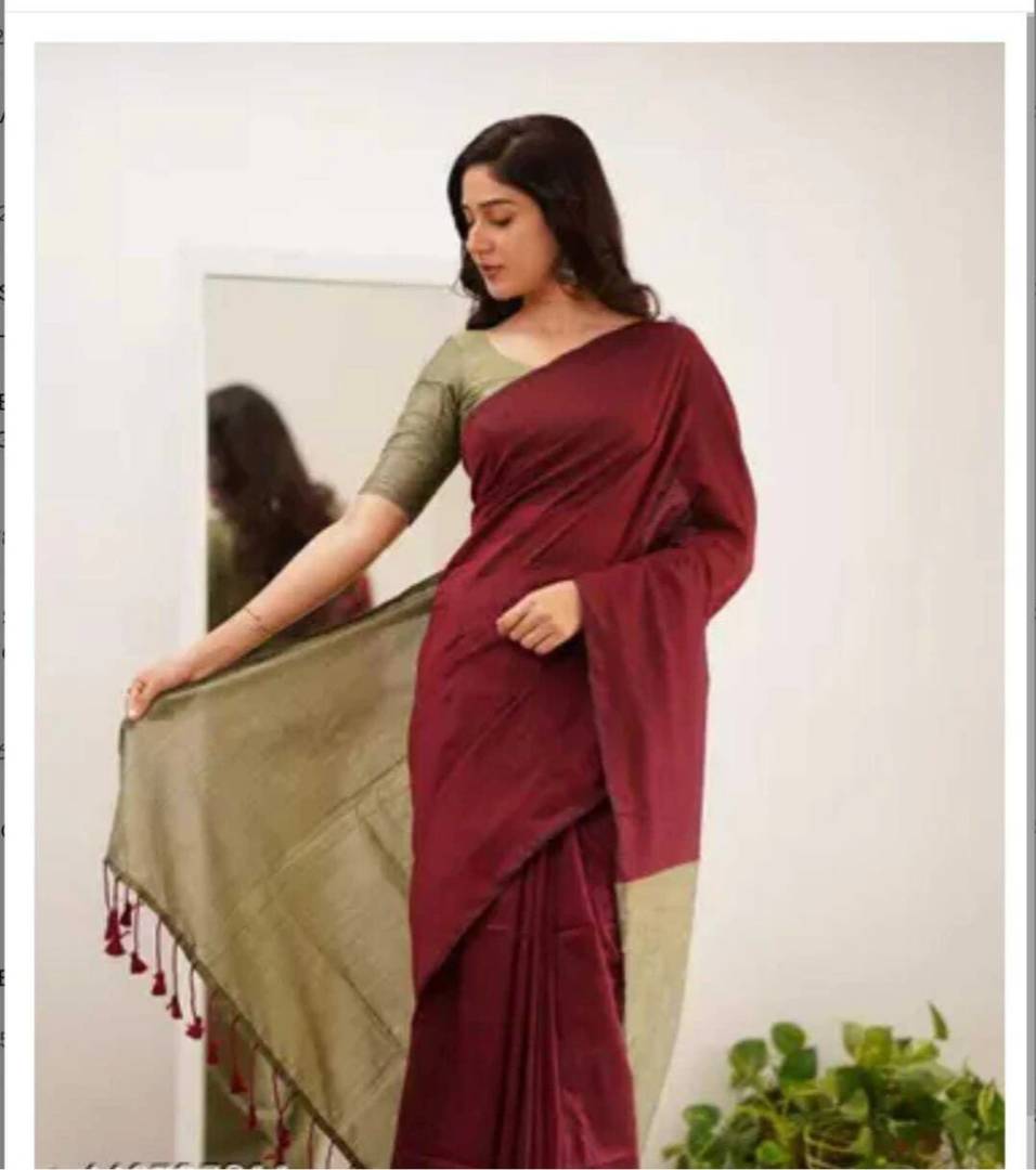 Solid/Plain Handloom Pure Cotton Saree (Red, Cream)