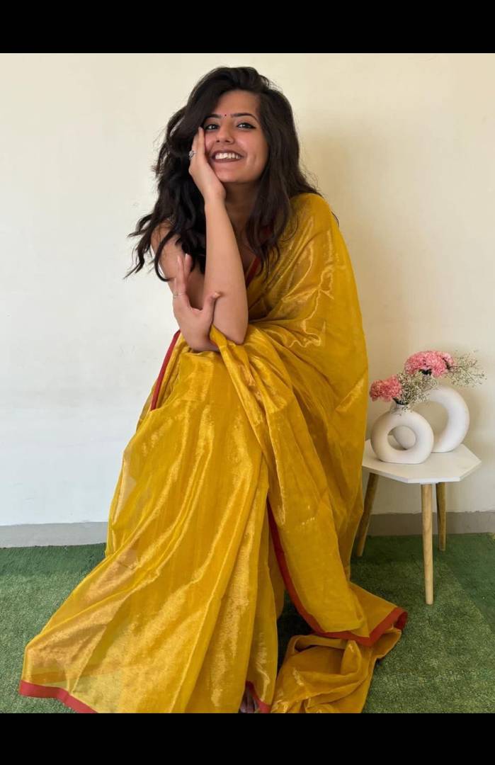 Sandhyatara Solid/Plain Handloom Tissue Saree (Gold)