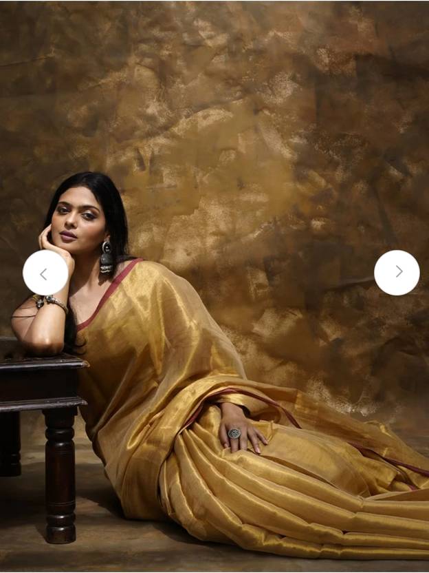 Solid/Plain Handloom Tissue Saree (Yellow)