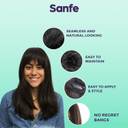 Introducing Sanfe Glam Strands Hair Bangs in Natural Black, made from 100% human hair for a natural and seamless blend. Lightweight and easy to use, these washable and reusable bangs can be clipped in for an effortless style change in just a minute, giving you the versatility to transform your look whenever you desire.