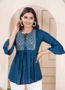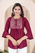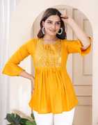 Discover the perfect blend of style and comfort with Sanganer Exports' Women's Rayon Short Kurtis. Crafted with care, these kurtis are designed to provide you with ultimate comfort throughout the day, allowing you to stay stylishly confident. Made from lightweight rayon fabric, they offer a breezy and breathable feel, ideal for the hot summer days. With a range of vibrant colors and eye-catching patterns, you can effortlessly elevate your fashion game. Whether you're heading to work, a brunch date, or a casual gathering, our Women's Rayon Short Kurtis will be your go-to choice. Make a stylish statement and embrace your unique personality with Sanganer Exports!