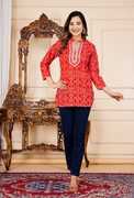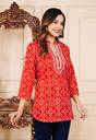 Sanganer Export Women Bandhani Straight Kurta (Red)