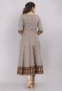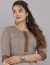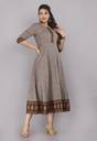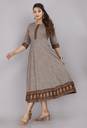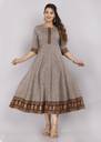 Sanganeri Kurti Women Self Design Khadi Cotton Anarkali Kurta (Brown)