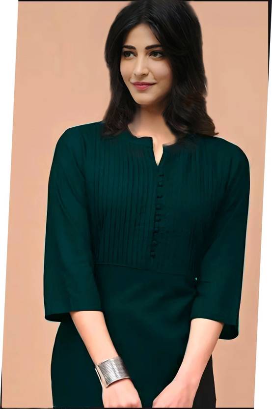 Sangawat Women Striped Straight Kurta (Dark Green)