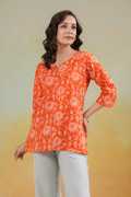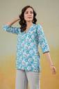SANGOURI Women Printed Straight Kurta (Light Blue)