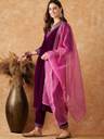 Sangria Women Zari Sequence Embroiderd Purple Velvet Kurta with Pant and Dupatta