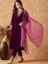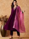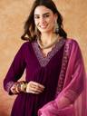 Sangria Women Zari Sequence Embroiderd Purple Velvet Kurta with Pant and Dupatta Embroidered Anarkali Kurta, Bottom & Dupatta Set