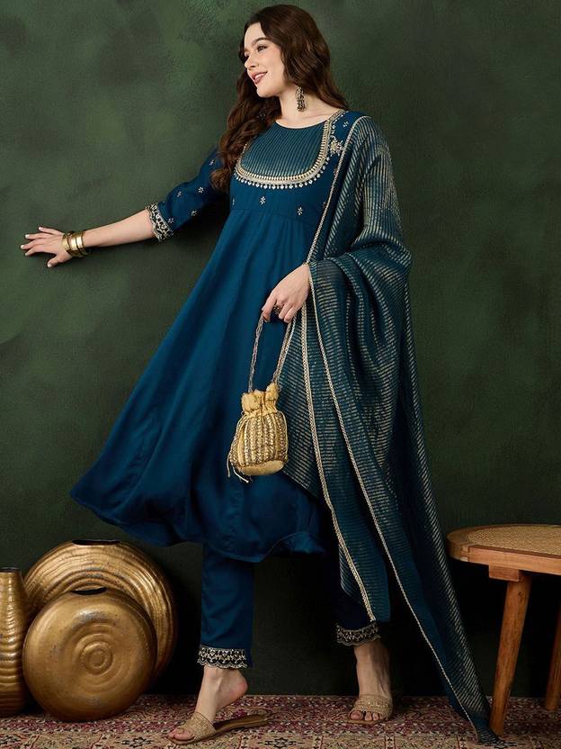 Sangria Embroidered Anarkali Kurta, Bottom & Dupatta Set