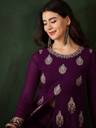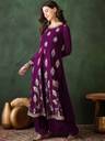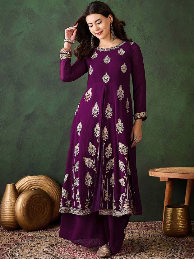 Sangria Magenta Georgette Zari Chain Stitch Embroidered Kurta Pant Set Embroidered Kurta, Palazzo & Dupatta Set