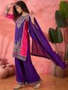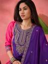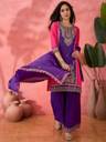 Sangria Purple Pink Vichitra Zari Sequence Embroidered Kurta Palazzo Dupatta