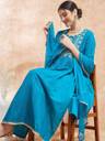 CYAN BLUE NYRA EMBROIDERY WORK STRAIGHT KURTA SET W DUPATTA
