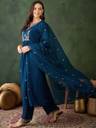 Sangria Zari Sequence Embroidered Teal Blue Silk Blend Kurta Pant with Dupatta Embroidered Kurta, Trouser/Pant & Dupatta Set