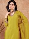 Women Embroidered Sequence Yellow Silk Blend Kurta with Pant and Dupatta