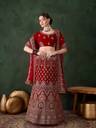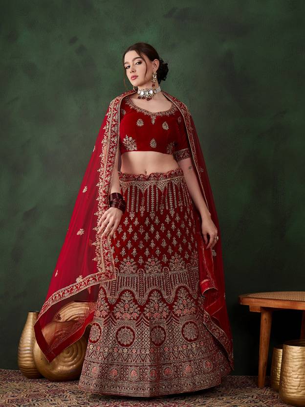Exclusive Exquisitely Crafted With Intricate Heavy Zari Embroidery And Adorned With Dazzling Diamond Work, This Lehenga Choli Is A Masterpiece Of Elegance. The Ensemble Is Complemented By A Beautifully Embroidered Blouse And A Matching Dupatta, Both Designed To Elevate Your Style For Any Special Occasion Work 2.50 Mtr Flaired Lehenga Of Red Colour Velvet Fabric And Sattin As Inner Fabric With Red Colour Velvet Fabric 0.90 Mtr Unstiched Blouse Material Including Red Colour Net Fabric 2.50 Mtr Dupatta By Sangria Brand