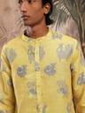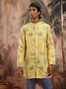 Men Printed Cotton Blend Straight Kurta (Yellow)