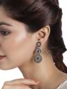 Oxidized Silver-Plated Studded Filigree Circular Drop Earrings