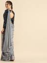 Sangria Silver Silk Blend Striped Embellished Party Designer Saree