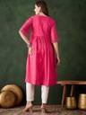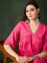 Sangria Women Self Design Flared Kurta (Pink)