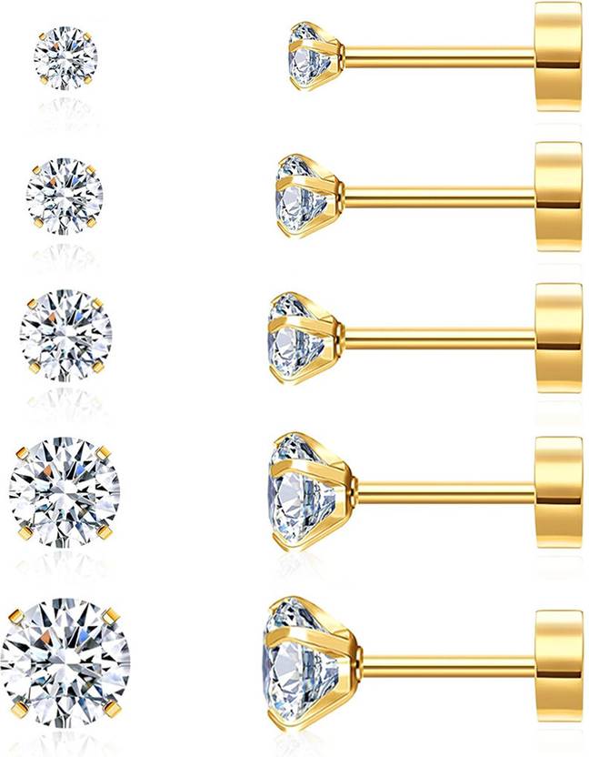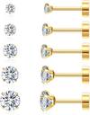 5 Pairs Earrings for Women Flat Back Gold Cartilage Stud Earrings Cubic