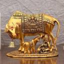 sanskaari Divine Edge Mini Kamdhenu Cow & Calf Idol Decorative Showpiece - 13.8 cm (Metal, Gold)