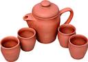 Sanskriti Pack of 2 Earthenware Organic re-usable Clay Tea Set (Tea Pot + 4 Kulhad) Eco-Friendly Clay Kettle Set (Brown, Cup Set)