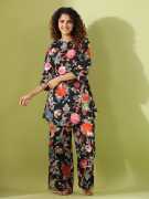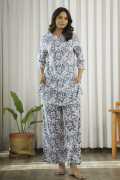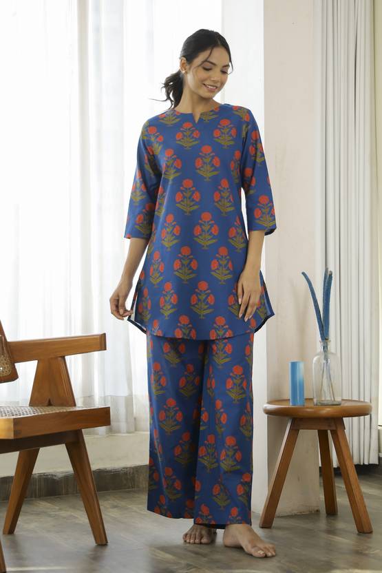 Sanskrutihomes Women Printed Blue Night Suit Set
