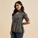 Women Ethnic Printed Mandarin Collar Cotton Regular Wear Top