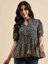 Enhance your ethnic collection with the Santoliya Women Ethnic Printed Mandarin Collar Cotton Top. Made from soft, breathable cotton, this top ensures all-day comfort while keeping you stylish. The eye-catching ethnic prints bring a hint of tradition, making it ideal for casual outings as well as festive celebrations.
