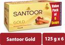 Santoor Gold Bathing Bar Soap with Kashmiri Saffron, Sandal and Sakura Extracts (6 x 125 g)