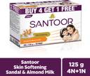 Santoor Skin Softening Sandal & Almond Milk Bathing Bar Soap For Soft and Youthful Skin| (5 x 125 g)