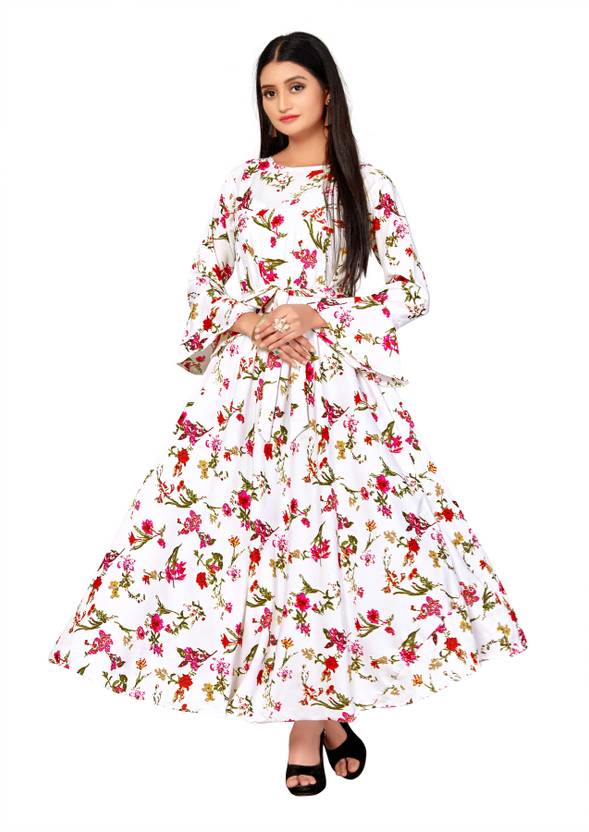 Printed Crepe Stitched Flared/A-line Gown (Multicolor)
