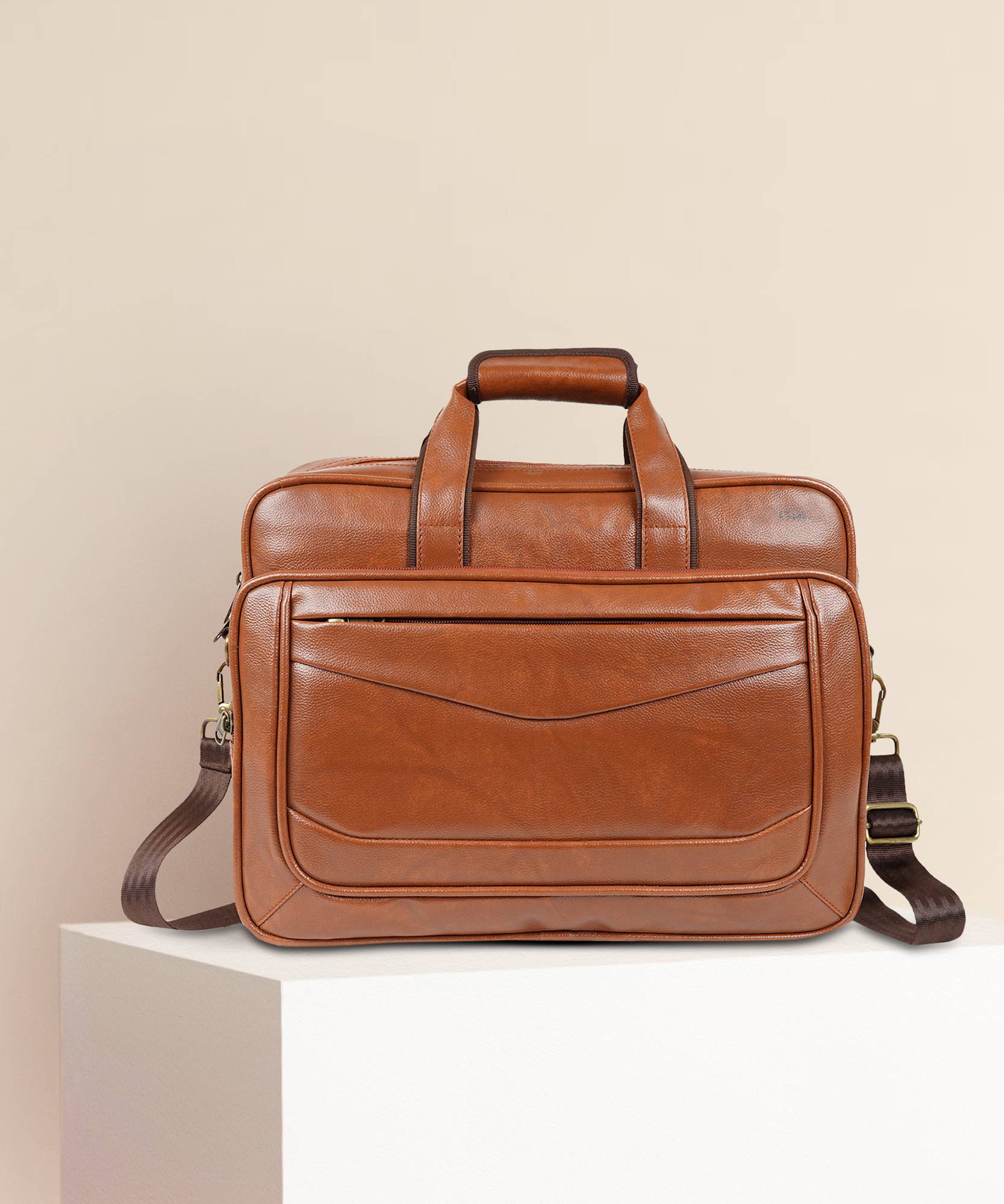 In this Design Front side zipped pocket which is suitable for small stationery belongings like Calculator, Sticky notes, Earbuds, Wallet, watch etc. Behind that little bigger pocket have segregated compartments can hold your go-to-go books, Power Bank, Tablet, pen, visiting cards, ID card etc. Then after 1st Main chain compartment contain Laptop sleeve pocket & other portion can have your charger, Mouse, Water bottle etc. Also, at bottom side we have given expandable zipped portion so you can make this compartment 1.5x bigger. so, it can make your life easier when your carrying extra things. now we came to 2nd Main chain compartment, it mostly suitable to hold important document & also zipped compartment is for rarely used documents & IDs. At last chain pocket which is mostly easy to approachable. so usually you can put thing which is used very often. We also provide detachable & Comfortable gripped belt.
