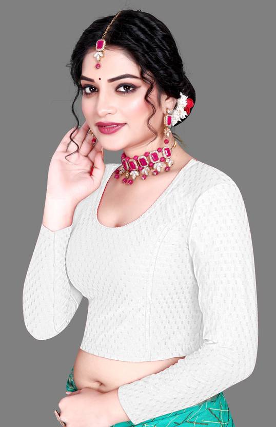 Elevate your wardrobe with this chic blouse crafted from stretchable lycra fabric. The round neck design offers a classic and flattering silhouette, while the full sleeves provide a touch of elegance and versatility. The lycra material ensures a comfortable, form-fitting shape that moves with you, making it perfect for both casual and formal occasions. Embrace style and comfort with this must-have addition to your collection.