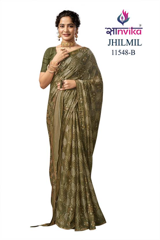 Printed Daily Wear Chiffon Saree (Green)