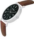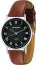This analog quartz wrist watch features roman numerals, faux leather band and stainless steel case, which is very suitable for business men