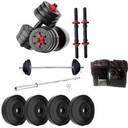 | Sales Package | - NO. OF PLATES: - 12 ( 5KG X 4 PLATES +3KG X 8 PLATES = 44 KG) No of gloves :- 1 pair No. of Straight Rod :- 1 piece No. of Dumbbell Rod :- 1 pair No of Rod Lock :- 2 piece