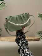 This White, Cloudy Pearl Sling Bag Exudes Class And Sophistication, Blending Evergreen Charm With A Dash Of Contemporary Flair. Each Component Of This Accessory Has Been Delicately Designed To Bring In An Air Of Refinement, Making It Versatile For Any Ensemble, From Casual Day Outs To Evening Affairs. First To Strike In The Mind Is The Soft, Pristine White Color Of The Bag, Reminiscent Of A Fluffy Cloud Drifting Lazily Across A Clear Blue Sky. Then There Is The Gentle Pearlescent Sheen That Gives It An Otherworldly Allure And Catches Light With Every Move In A Mesmerizing Play Of Luminosity. Sleek In Silhouette, This Sling Bag Is Designed For Style And Functionality. Its Compact Interior Allows Self-items To Be Carried With Enough Room, Ensuring Practicality Without Compromising On The Aesthetics Part. This Invites Tactile Exploration With Its Supple Texture And Evokes A Sense Of Luxury And Indulgence On The Outside Of The Bag.