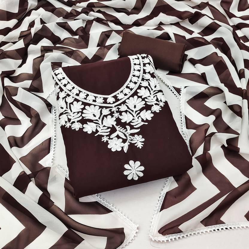 Women's faux georgette daily wear embroidered thread work unstitched dress material